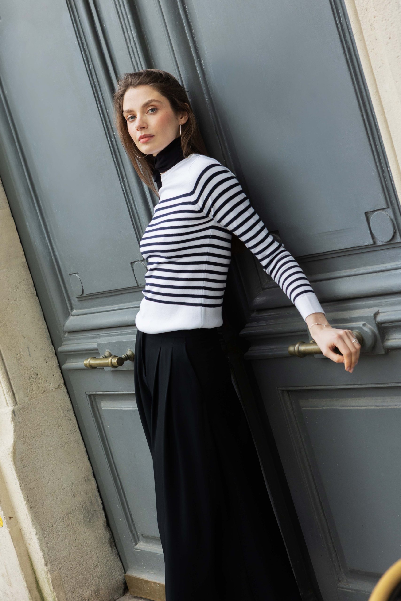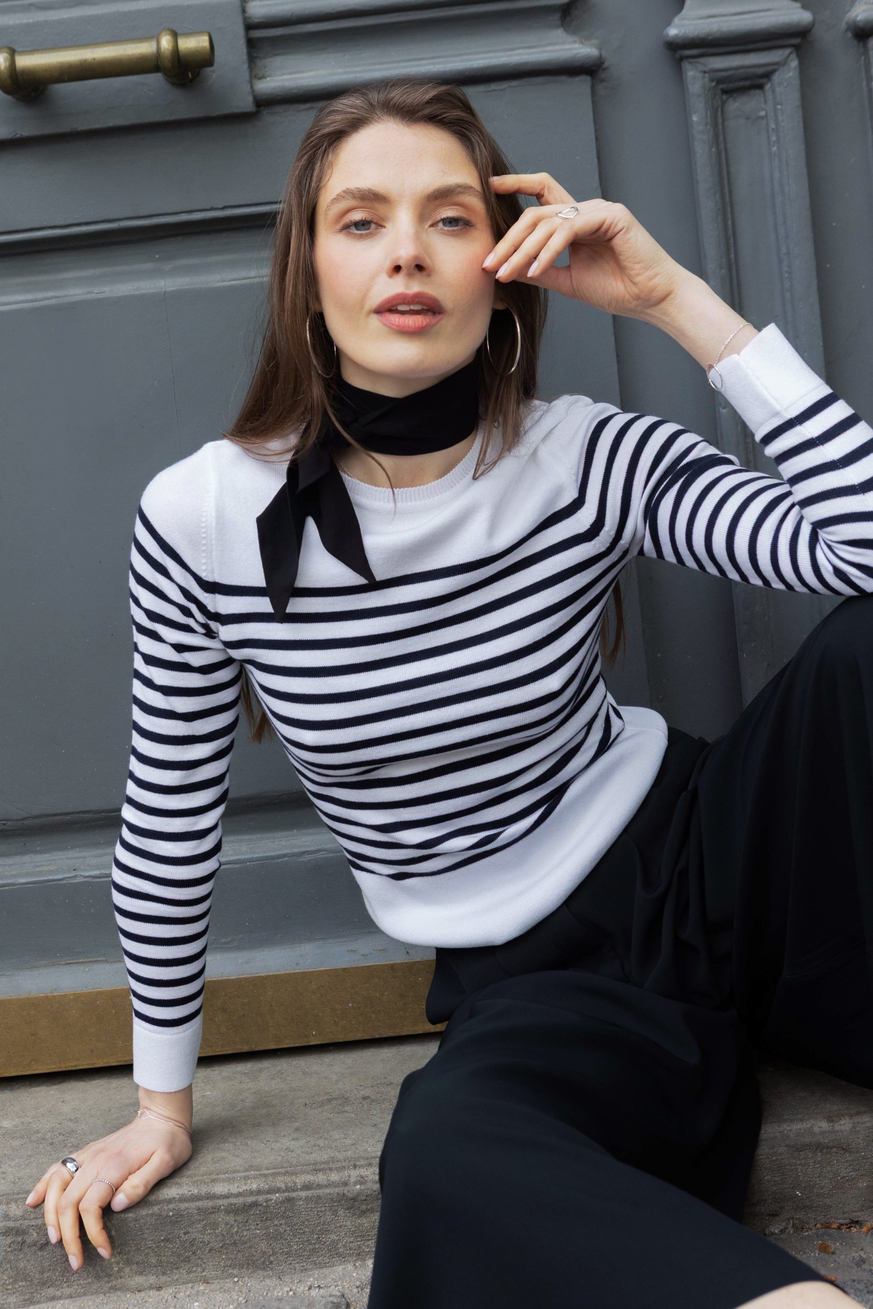 Die Marinière ist das wahre Markenzeichen der Pariserin und ein unverzichtbares Must-have in jeder Damengarderobe. Der Pullover Léonie greift diese klassische Eleganz auf und interpretiert sie à la Ann&line: klare Linien, eine feminine Passform und ein besonders weiches Material, das Komfort und Stil perfekt vereint.