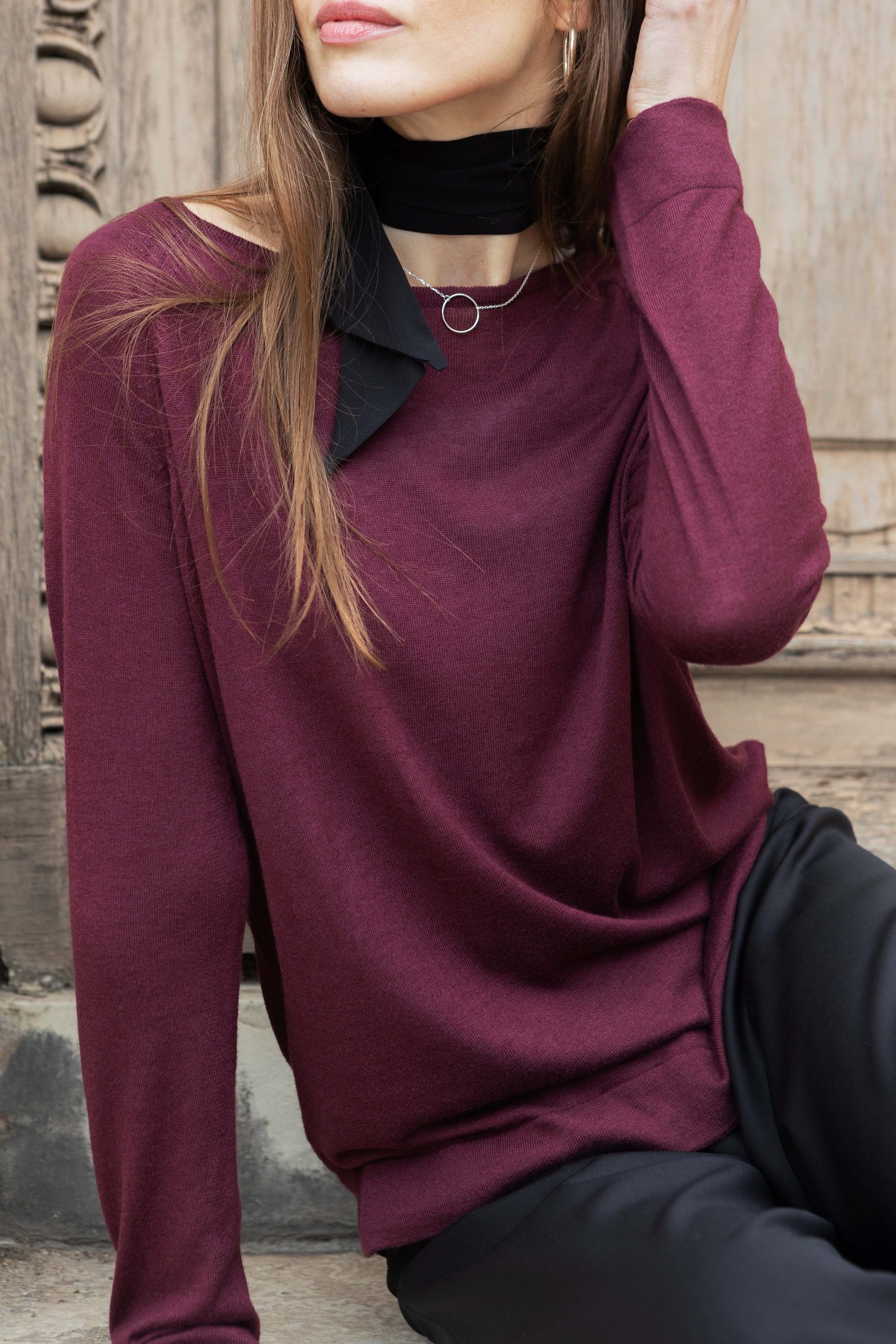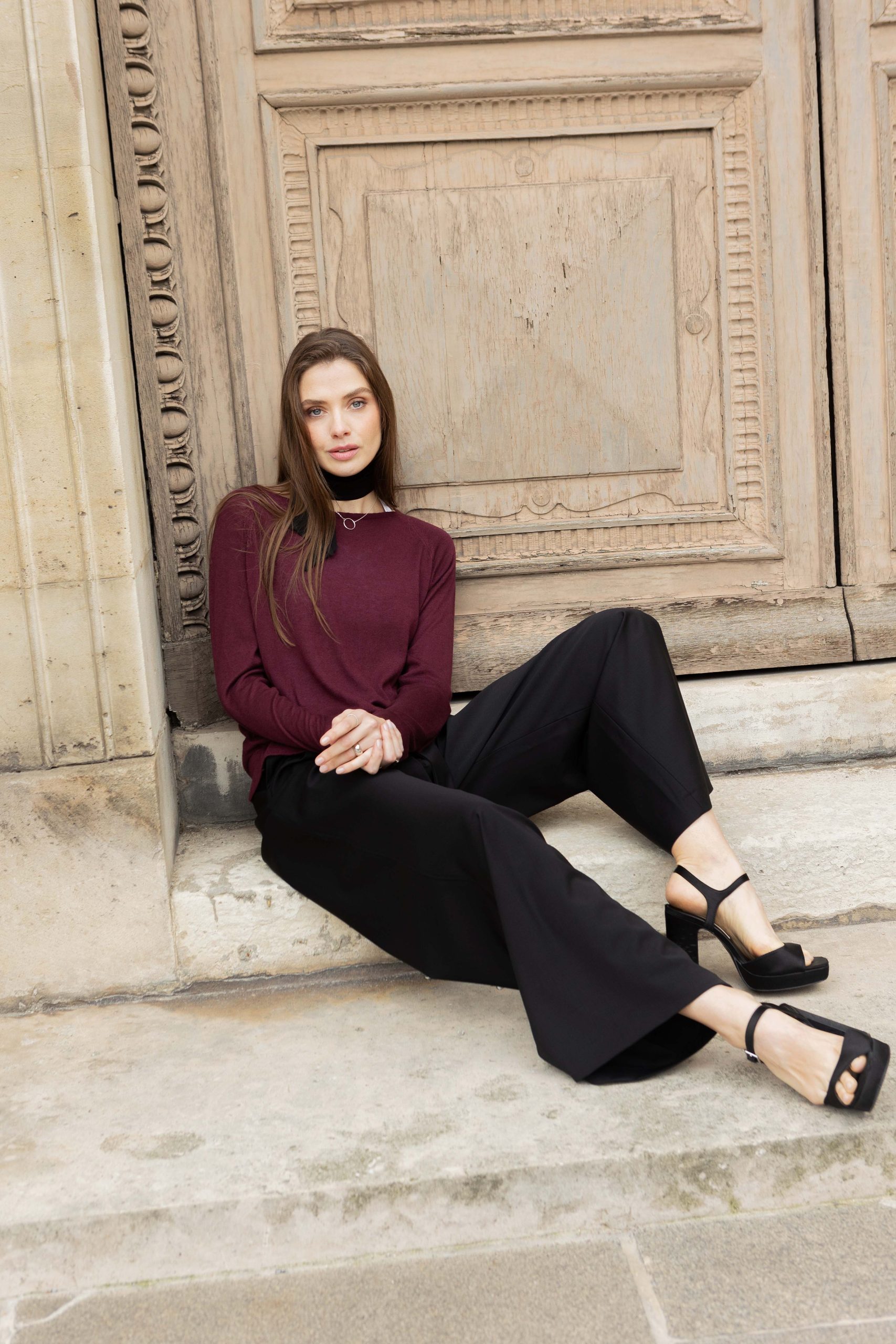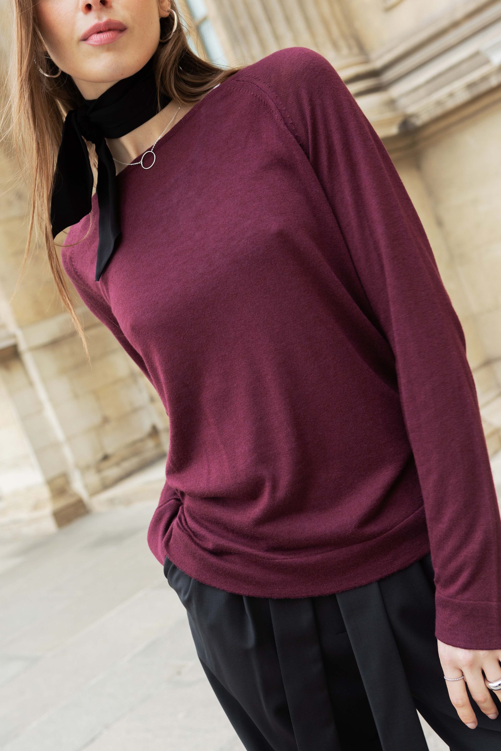 Vervollständigen Sie Ihre Garderobe mit dem lockeren Strickpullover « Phoebe », der aus weicher Viskose mit Anteil feinster Merinowolle besteht.
