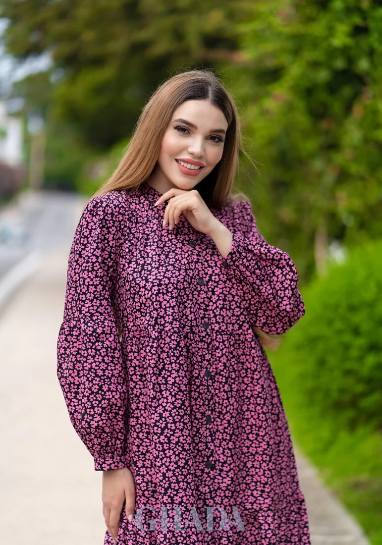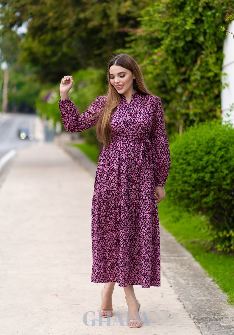 Robe longue en noir imprimée.