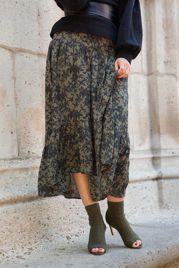 Rock Kenza khaki Blumen