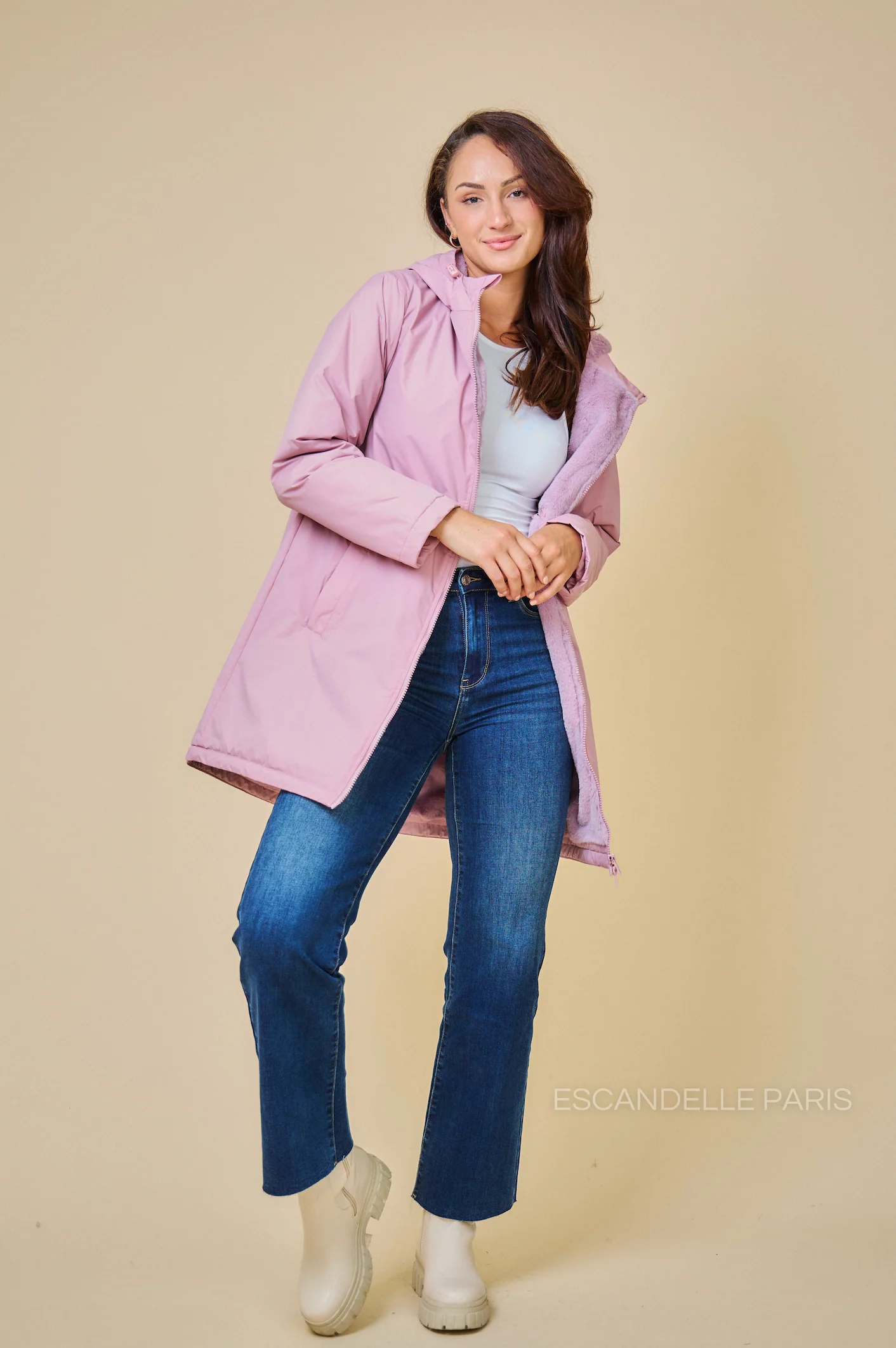 Parka mi-longue imperméable Fourrée Coupe droite Fourrure synthétique à l’intérieur Fermeture zip sur le devant Deux poches latérales devant Notre mannequin mesure 178cm et porte une taille S