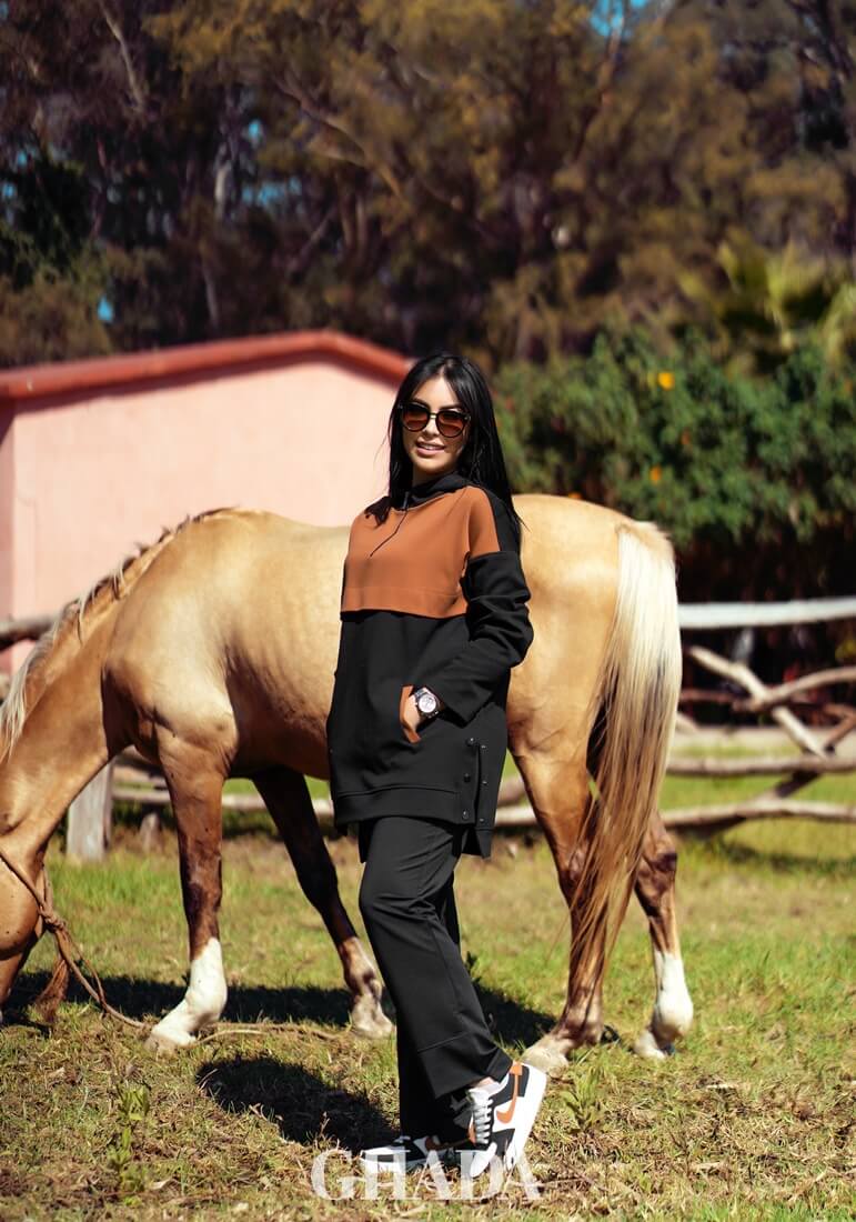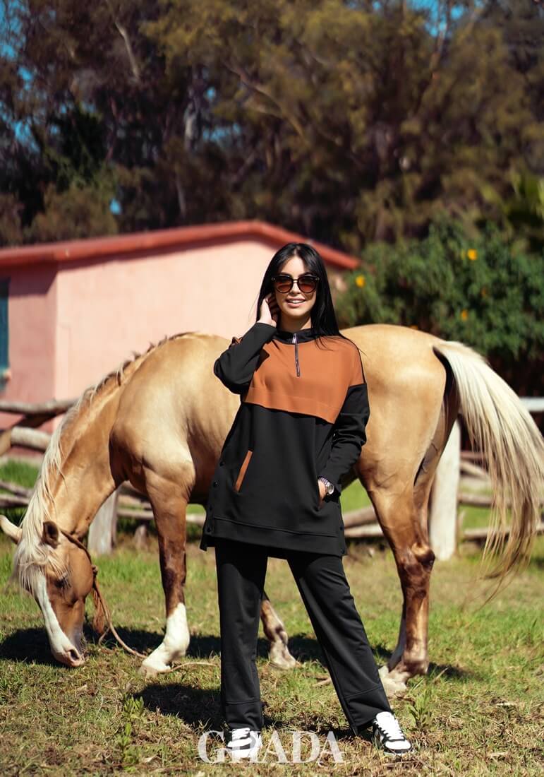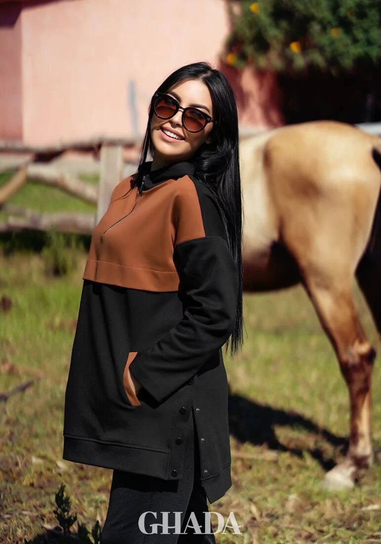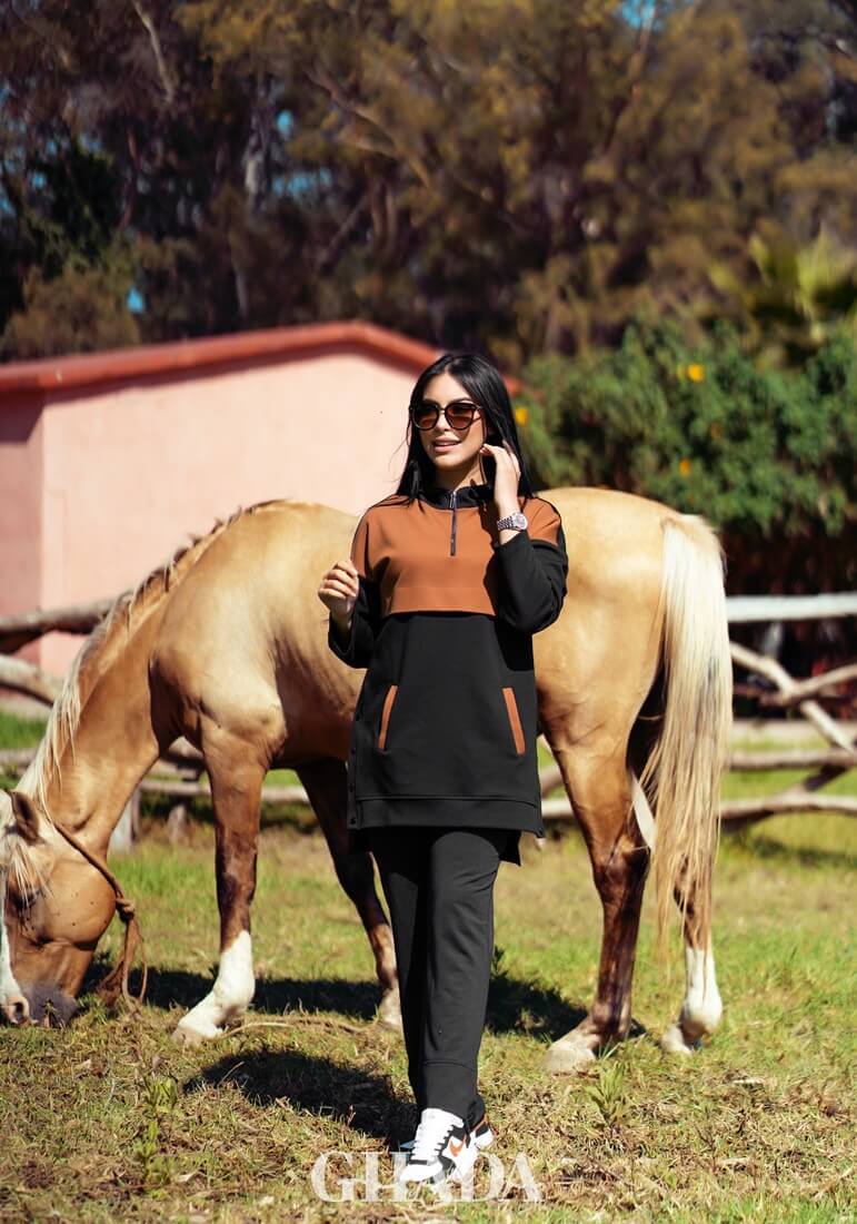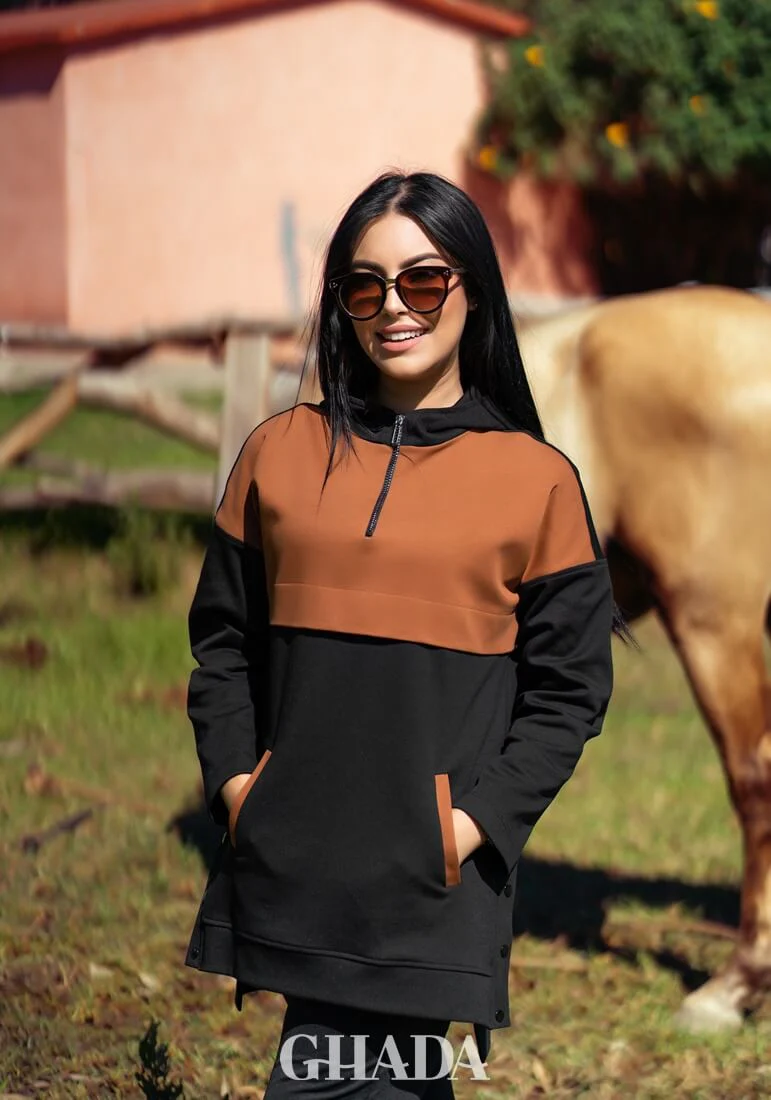 Sweat à capuche over size en noir et marron avec zip sur le devant et des boutons pressions sur les cotés. en tissu molletonnée double face de très haute qualité.