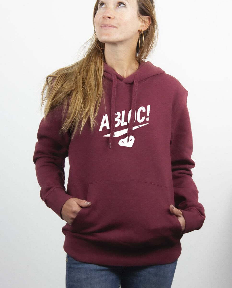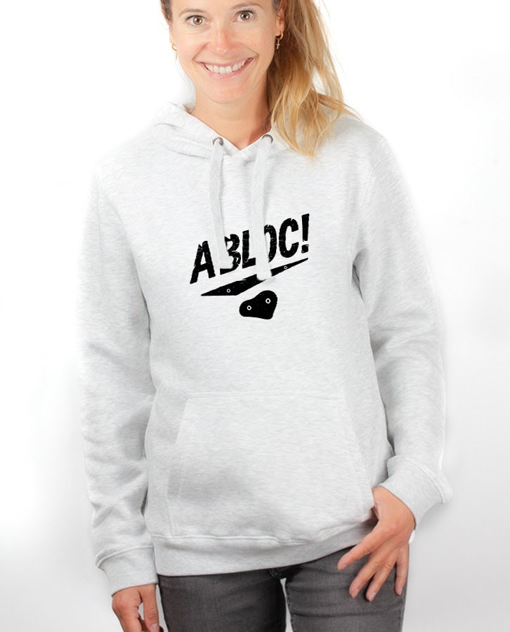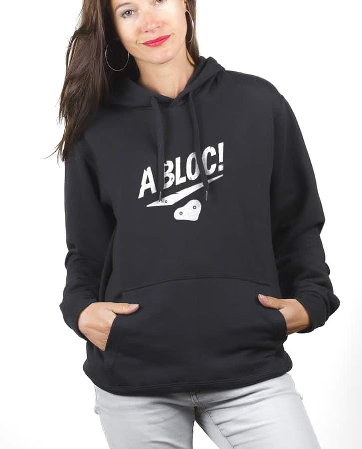 A bloc !, Le Sweat à capuche pour Femme : L’escalade est votre passion. En falaise, en salle, en bloc, chez vous, tout se grimpe ! Portez ce modèle escalade au message positif et encourageant. Le dessin représentant une prise d’escalade parlera tout de suite aux grimpeurs aguerris. Vous êtes à bloc, surtout quand il s’agit de pratiquer votre sport préféré qu’est l’escalade. Une salle de bloc est toujours l’occasion pour vous de vous défouler, tout en vous détendant, l’esprit et les muscles ! Une séance d’escalade et hop, vous êtes à bloc !