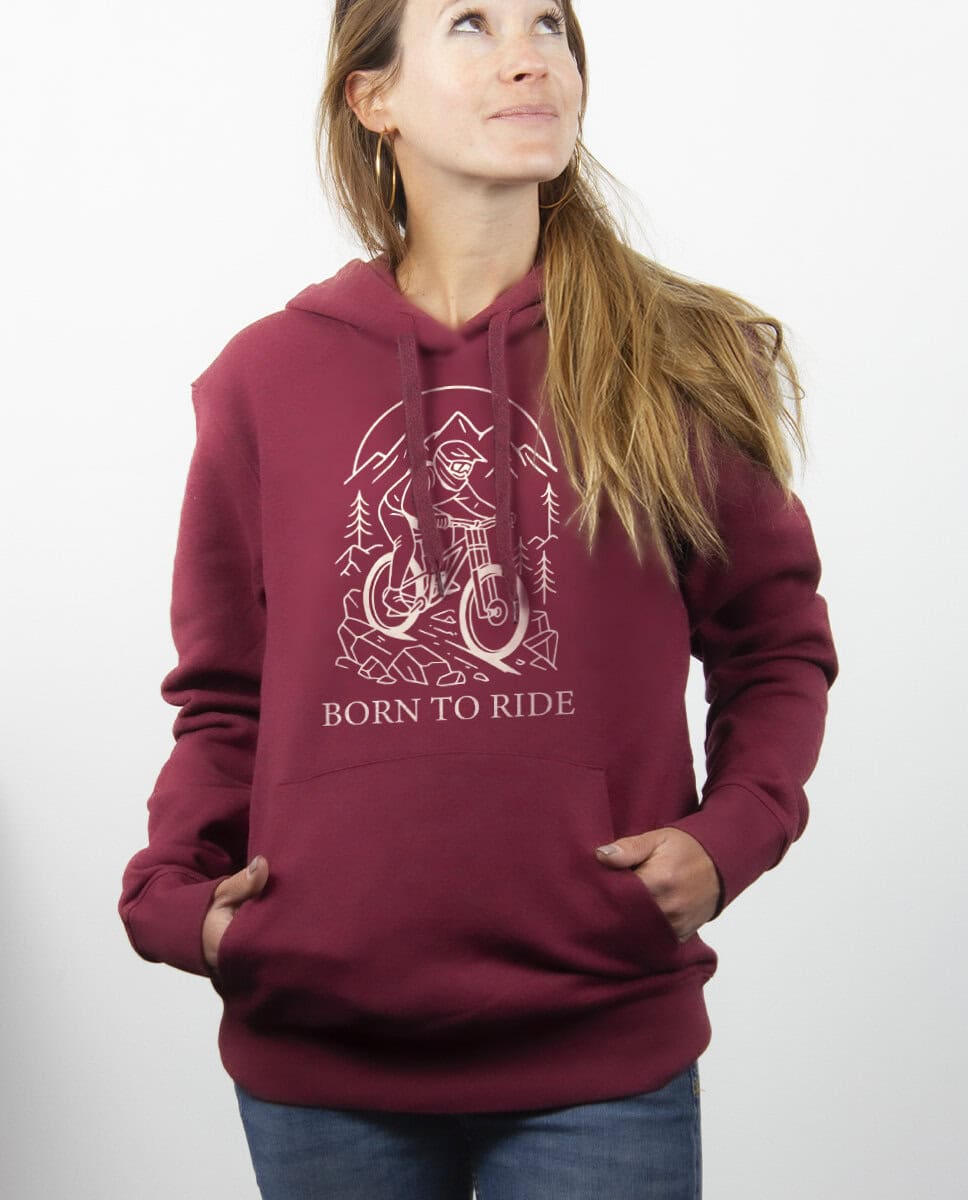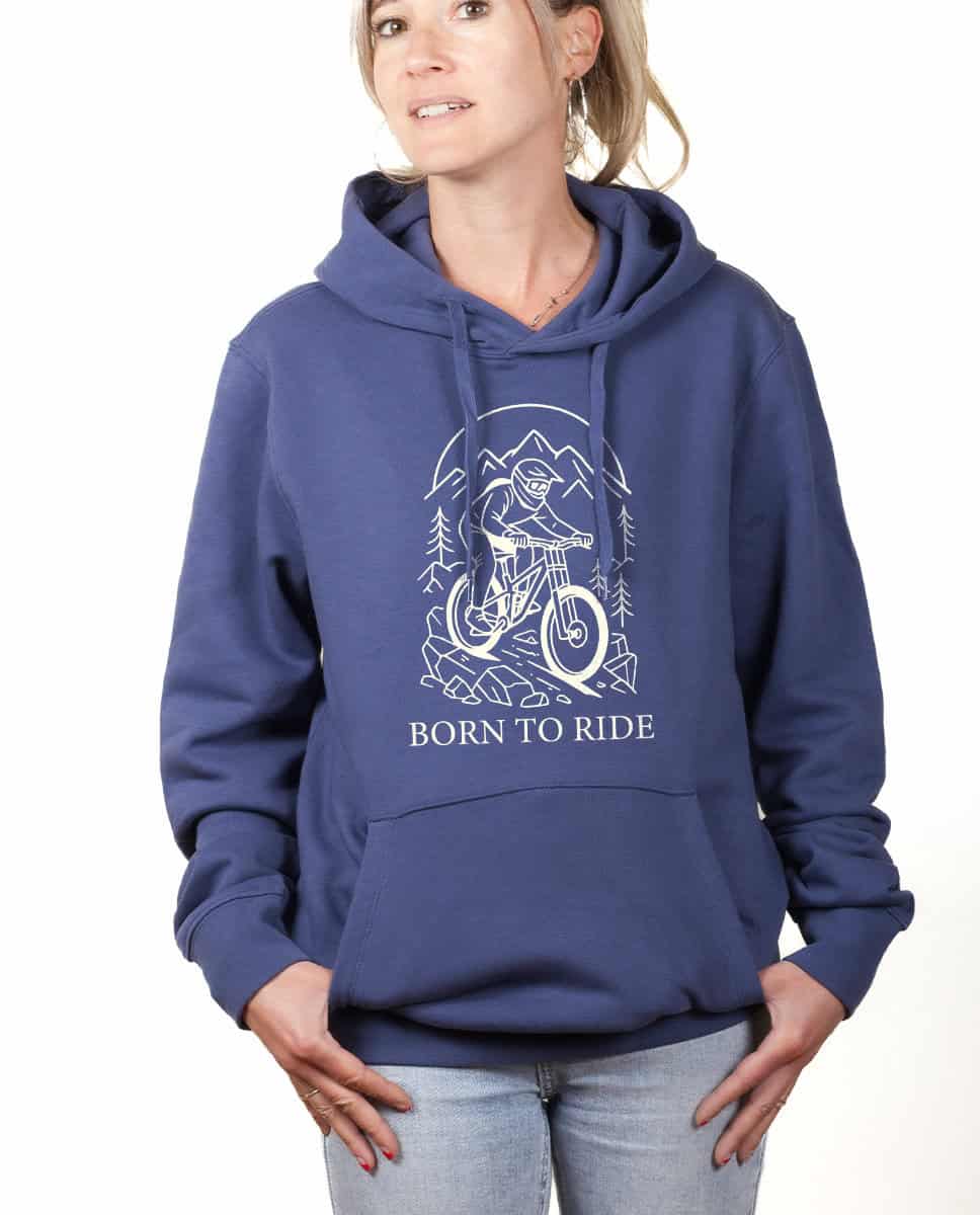 Born to ride – VTT, Le Sweat à capuche pour Femme : Pour les amoureux de la terre, des sentiers… et de l’adrénaline