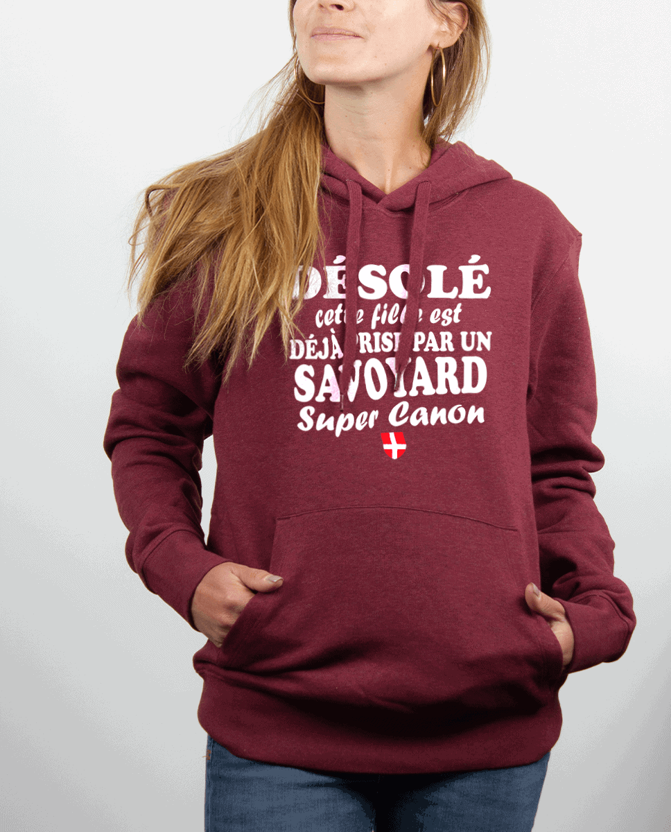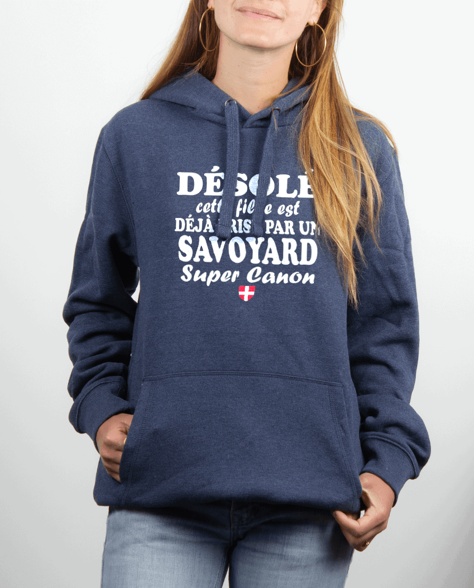 Désolé cette fille est déjà prise par un Savoyard super canon : Voilà le sweat idéal à offrir à votre dulcinée. En lui offrant ce sweat, les autres hommes sont prévenus… Le cœur de cette merveilleuse femme est déjà pris et pas par n’importe qui !