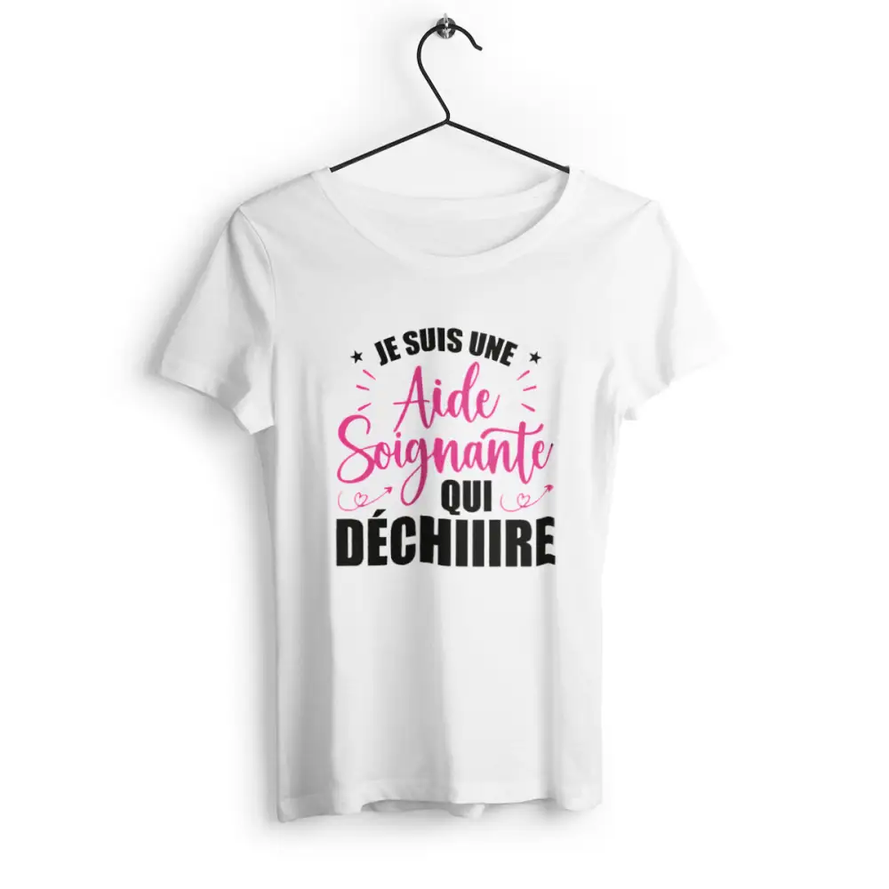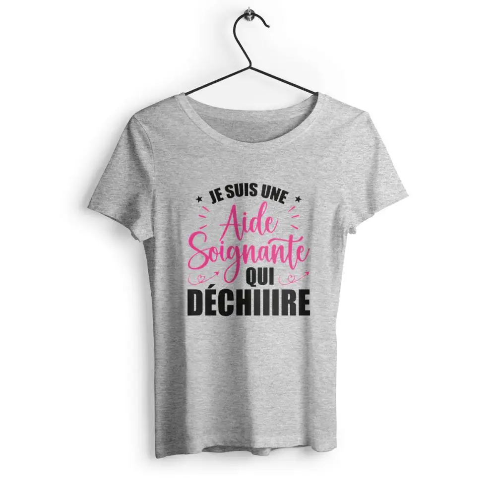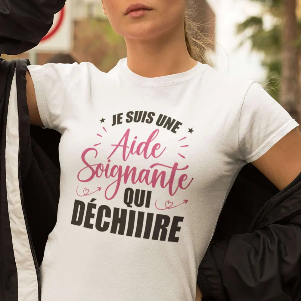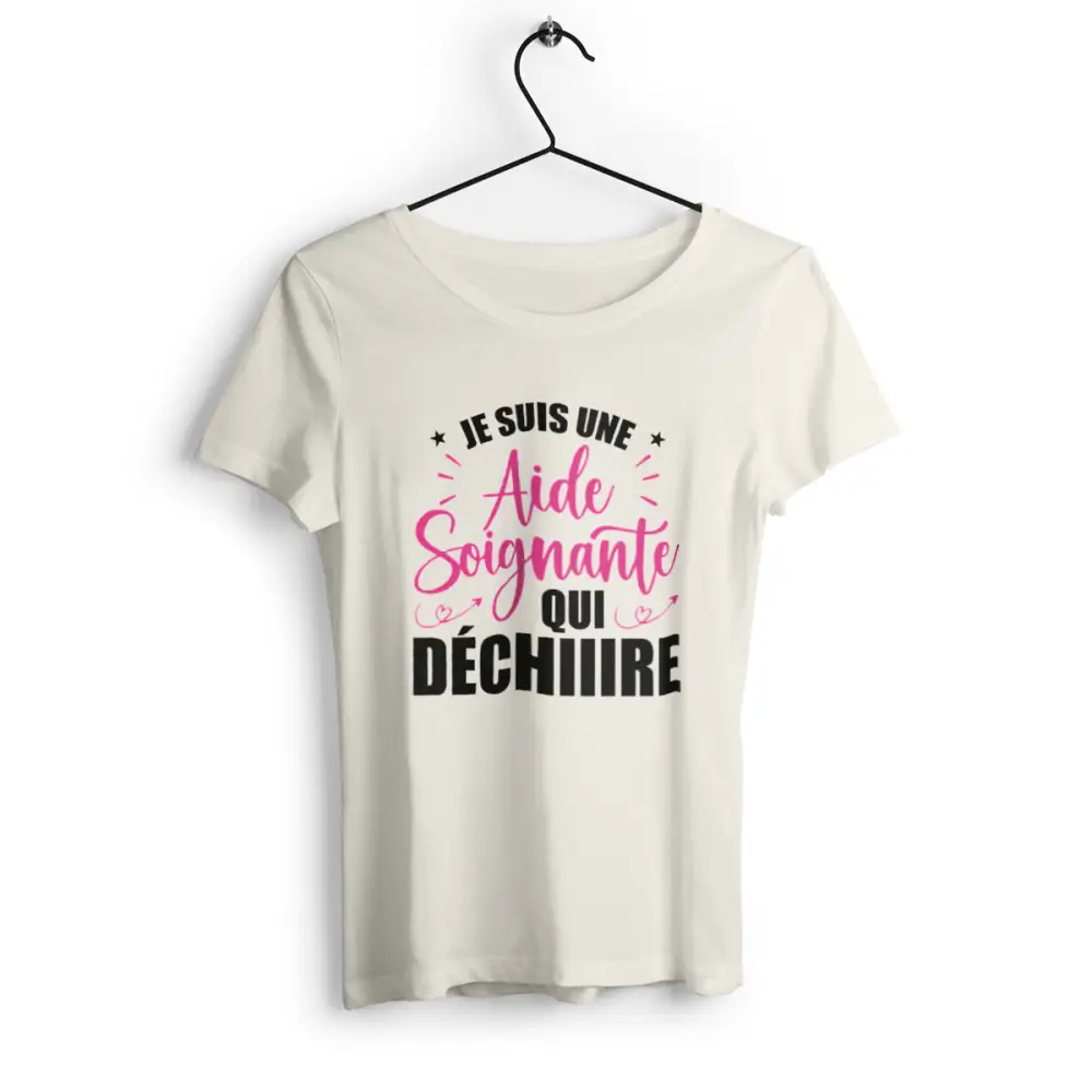 T-shirt femme Je suis une aide soignante qui déchire Premium + en Coton Organique