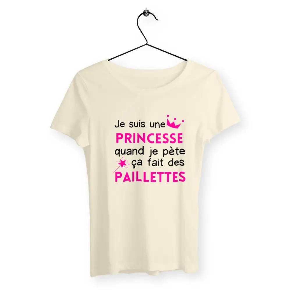 T-shirt femme Quand je pète ça fait des paillettes Premium + en Coton Organique