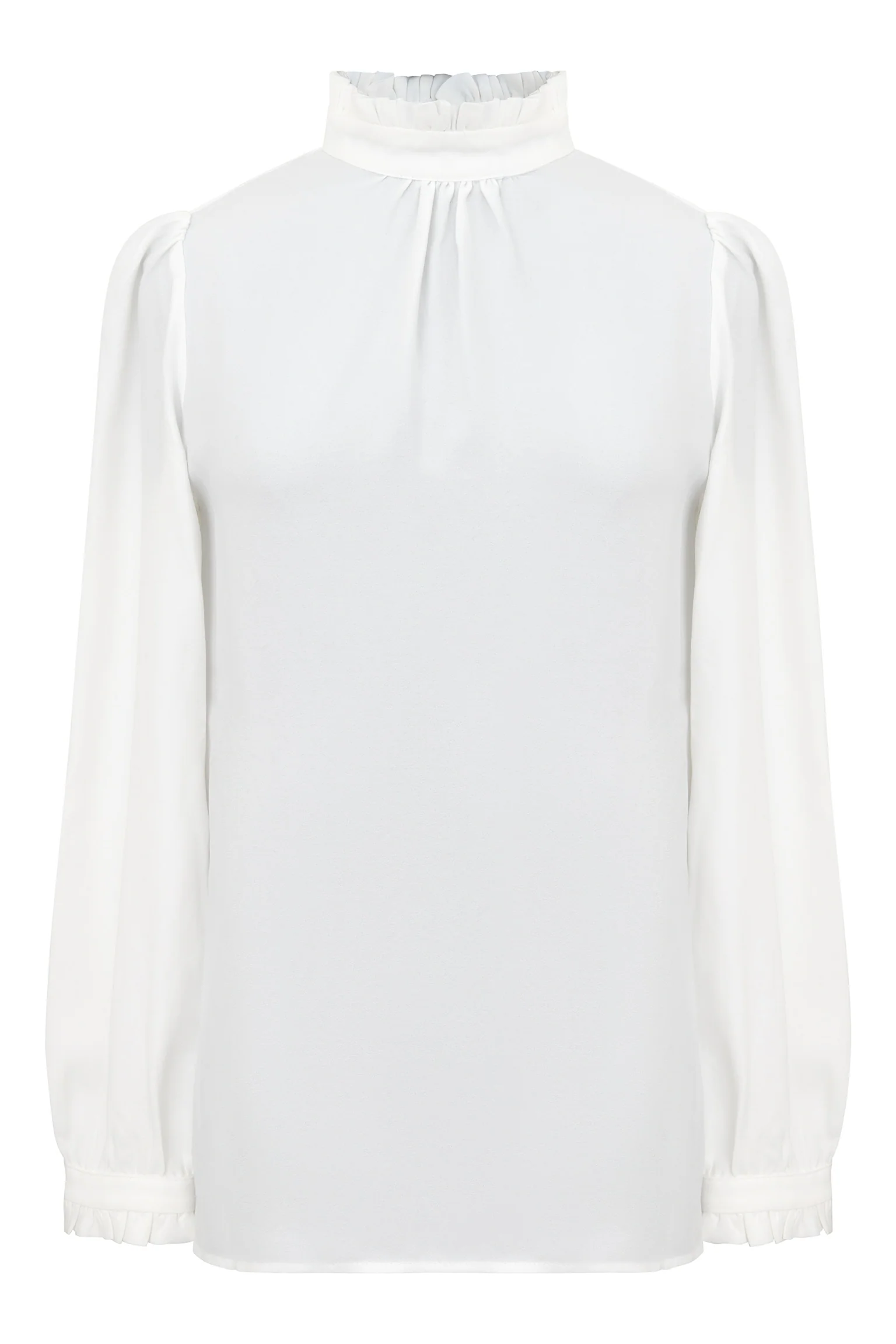 Es hat einen leicht ausgestellten Schnitt und hübsche Rüschendetails an den Ärmeln und am Ausschnitt.