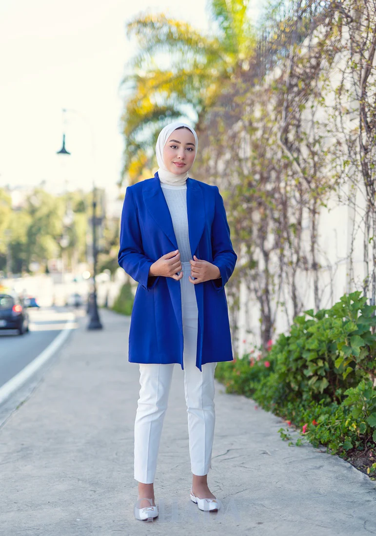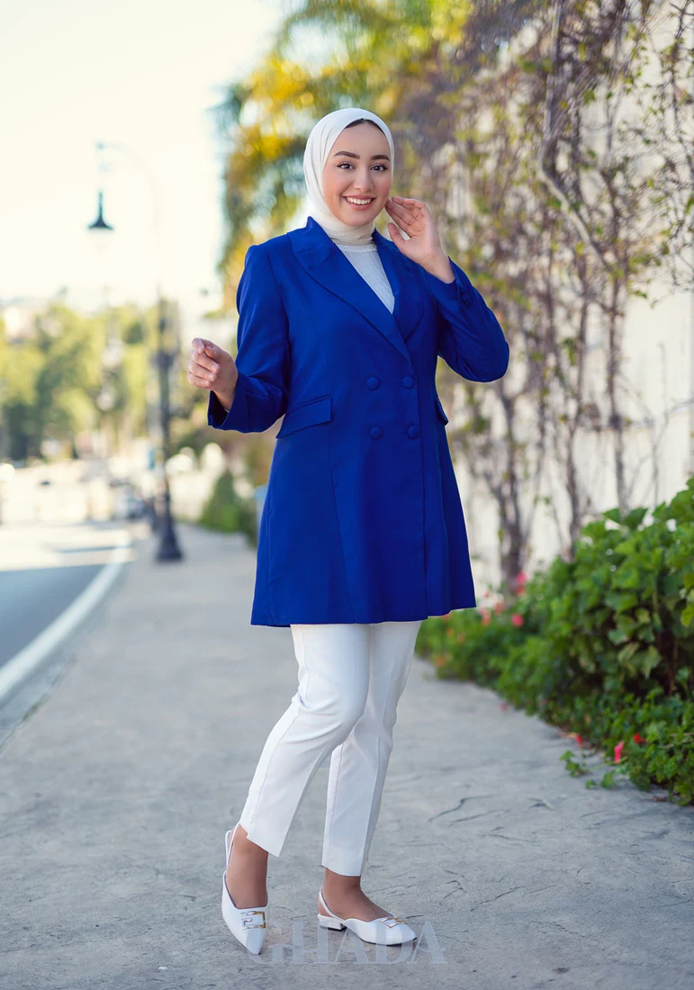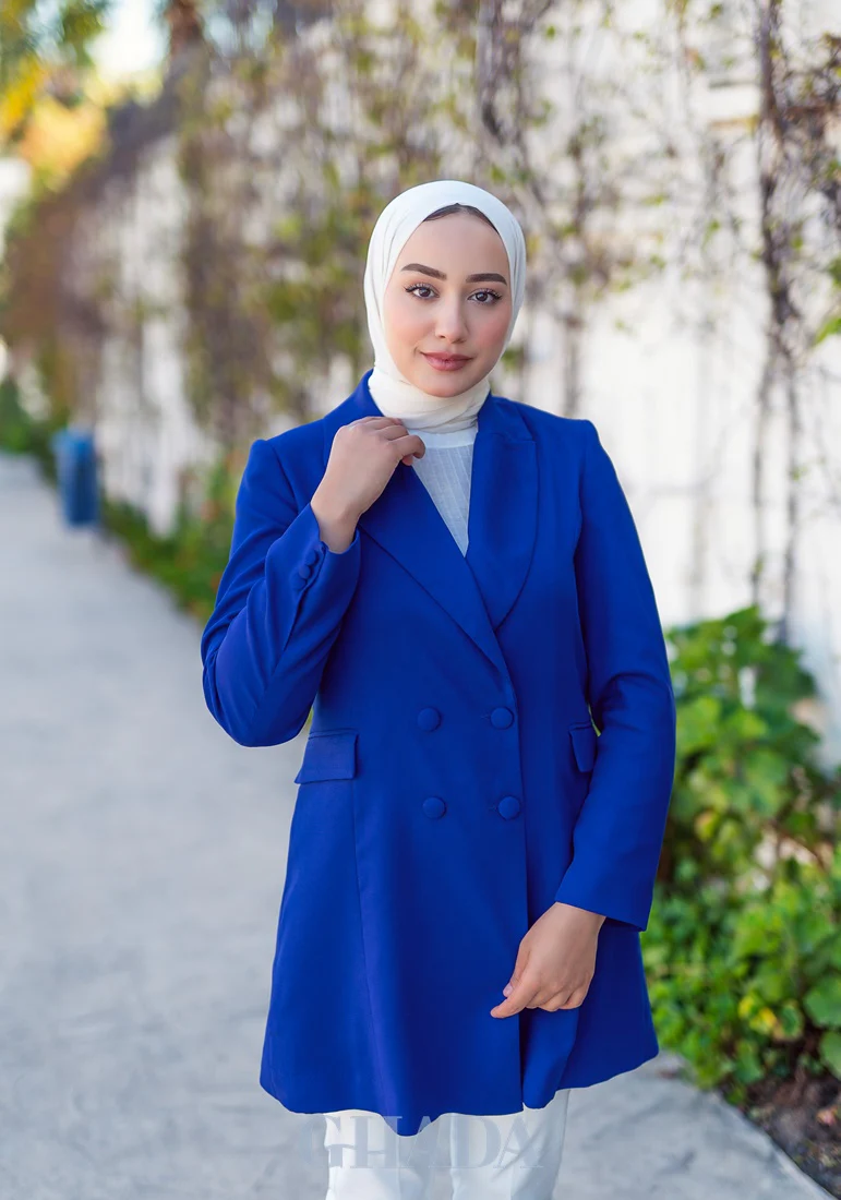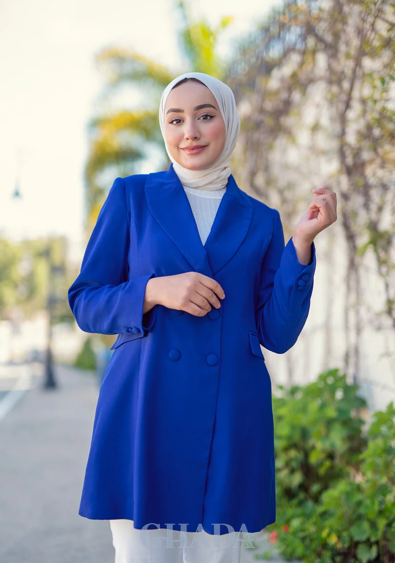 Veste longue en bleu roi