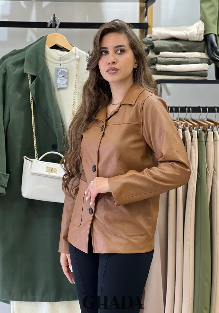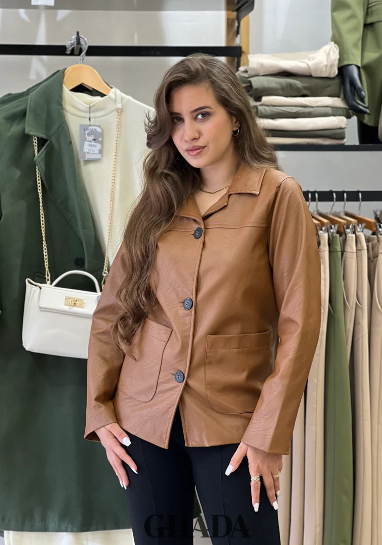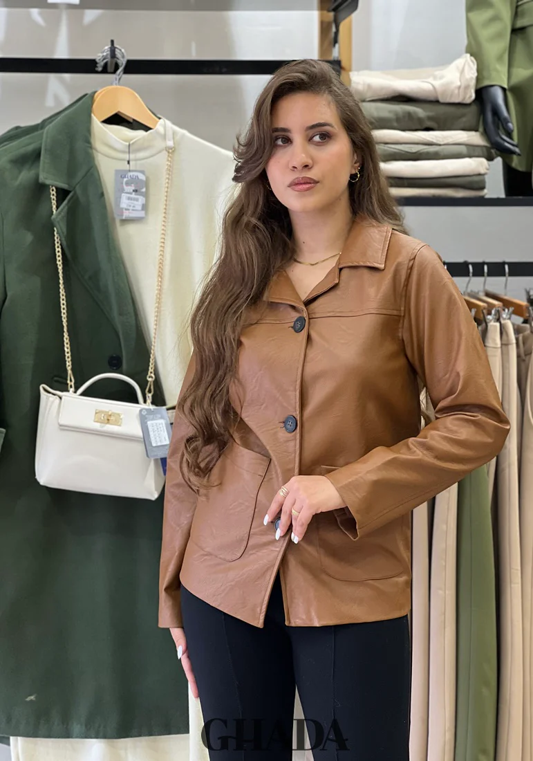 Soyez le premier à laisser votre avis sur “Veste marron en simili-cuir”